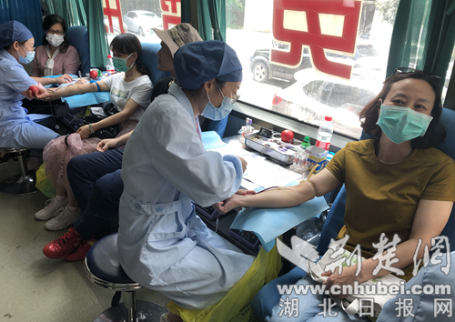 当天早上,两辆大型献血车开进了荆门公交集团一公司与市交通运输局院内,工作人员携手医护人员,对场地进行消毒及布置分工,有序开始采血工作。