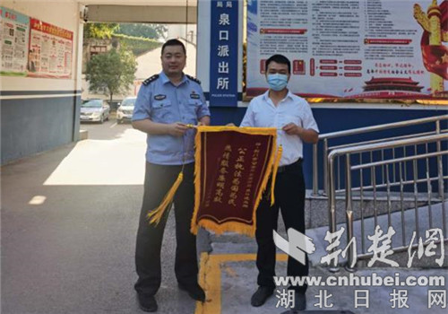 荆楚网客户端—荆楚网消息(通讯员 陈晨)8月4日,一养老院工作人员向荆门市公安局东宝分局泉口派出所赠送“公正执法为国为民,热情服务廉明高义”锦旗一面,对民警尽心尽力调解养老院内一起纠纷表示感谢。