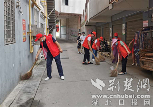 目前,荆门市正举全市之力创建全国文明城市,近期雨水频繁,加上气温炎热,极易滋生蚊虫。为消除环境卫生隐患,7月31日,望兵石社区党支部组织30余名在职党员到“三无小区”开展清扫洁城志愿服务。党员们穿着红色马甲,清理小区、花坛等处的积水和其他卫生死角,为居民创造良好的居住环境。