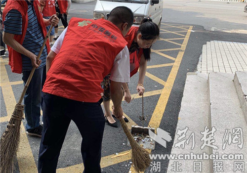 荆门邮政党员志愿者在社区打扫卫生。通讯员 供图