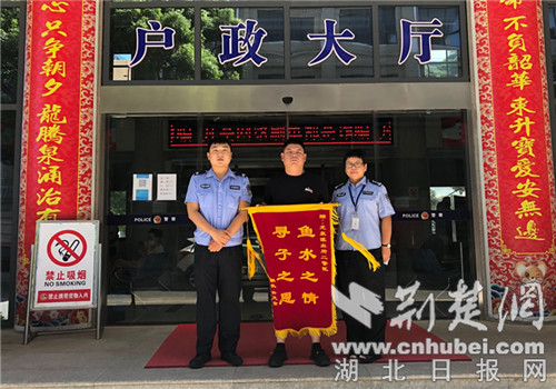 荆楚网客户端—荆楚网消息(通讯员 张欣哲)8月14日上午10时许,荆门市公安局东宝分局龙泉派出所接警大厅传来一阵阵感谢声,辖区群众许先生不停地向派出所二警区民辅警弯腰道谢,真诚感谢民辅警帮助他们找回离家出走的女儿,并赠予锦旗一面。