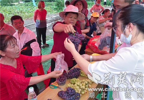荆楚网客户端—荆楚网消息(记者安从斌 通讯员 熊东东 刘成化)8月22日上午,荆门都市乡村游暨第三届京河葡萄节在漳河新区京河村葡萄文化广场开幕,现场品尝、有奖问答等丰富的线上线下活动,为游客带来一场美味又好玩的“葡萄盛宴”。