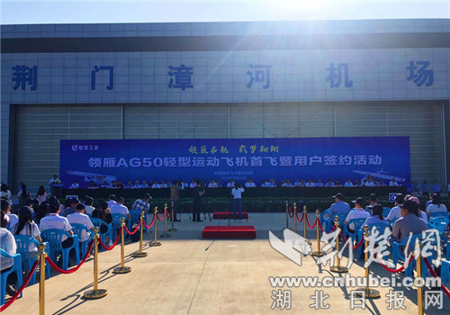 荆楚网客户端—荆楚网消息(记者 安从斌 通讯员 熊东东、梅春艳)8月26日8时38分,湖北荆门美丽的漳河之滨,由航空工业自主研制的“领雁”AG50轻型运动飞机犹如一只领航的大雁,迎风而上,振臂高飞,轻盈翱翔。飞机经过12分钟平稳飞行后安全着陆,为观众呈现了完美的空中首秀。