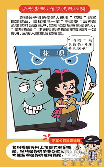 诈骗分子引诱受害人使用“花呗”购买指定商品,谎称扣除一定“手续费”后将剩余钱款打回原账户,实则收款后拉黑受害人;“借呗提额”诈骗则谎称提额前需缴纳一定费用,受害人缴费后被拉黑。