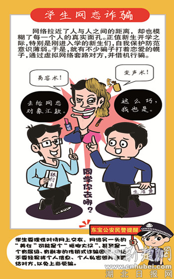 网络拉近了人与人之间的距离,却也模糊了每一个人的真实面孔。正值新生开学之际,特别是刚进入学的新生们,自我保护防范意识薄弱。于是,就有不少骗子打着恋爱的幌子,通过虚拟网络套路对方,并借机行骗。