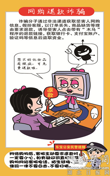 民警提醒:网络购物后,客服主动要求退款时,一定要小心,如有疑问可直接联系购物网站客服电话,陌生链接、二维码一律不要点击、不要扫描。