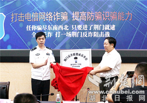 为荆门反诈联盟成员单位授牌。通讯员供图