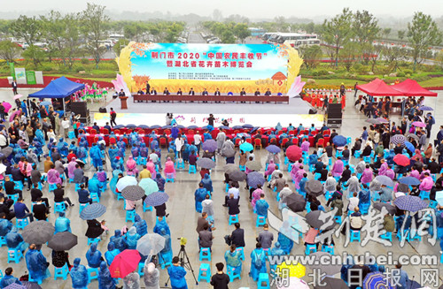 荆楚网客户端—荆楚网消息(记者安从斌 通讯员钱修海、周芳)9月29日,荆门市2020“中国农民丰收节”暨湖北省花卉苗木博览会在位于掇刀区团林铺镇的荆门花博园内举行。