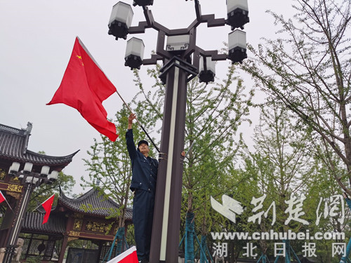 据荆门市城市公园管理处相关负责人介绍,该处还在龙泉公园等地悬挂了180余面国旗和28对灯笼,成为公园一道亮丽的风景线。