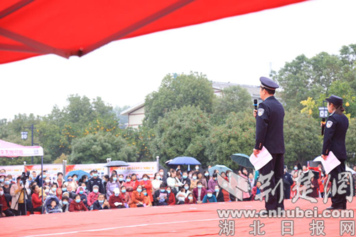 荆楚网客户端—荆楚网消息(通讯员 黄翔)11月16日下午,荆门市沙洋县洪岭社区门前广场正在进行一场居民广场舞大赛,沙洋水陆派出所民警金强和同事利用比赛间隙登上舞台客串起主持人,并与台下观众互动,一场简短的反诈宣传活动就此展开。