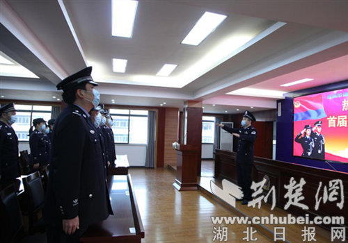 荆楚网客户端—荆楚网消息(通讯员 闫春阳)1月10日,在庆祝首个中国人民警察节当天,荆门市公安局东宝分局组织80余名民警在龙泉派出所6楼会议室开展了“庆祝首个人民警察节,温誓词、唱警歌、向警旗敬礼”活动。