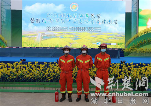 荆楚网(湖北日报网)讯(通讯员 朱荣荣)3月16日,“湖北省油菜花节暨荆门·沙洋第十三届油菜花旅游节”盛大开幕,为确保开幕式安全顺利进行,荆门市消防救援支队沙洋大队按照开幕式安保方案统一安排部署,出动2辆消防车,12名消防指站员前往曾集镇张池村主会场、分会场前置执勤,确保活动期间消防安全。
