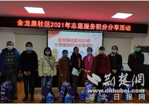 荆楚网(湖北日报网)讯(通讯员 李秀杰)3月17日,荆门市东宝区泉口街道金龙泉社区开展了志愿服务积分分享活动,回馈志愿者们的辛勤付出,进一步激发辖区居民的志愿服务热情。