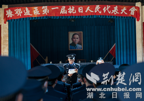 民警们还来到了绿林镇向集村罗氏祠堂暨豫鄂边区第一届抗日人民代表大会旧址,在京山市局党委副书记、政委宋学军带领下重温入党誓词。誓言铿锵,时刻警醒大家牢记党员身份,继承革命先辈矢志不渝的理想信念砥砺前行。