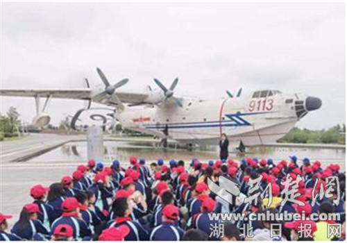 研学导师为学生讲解水轰5背后的故事。通讯员供图
