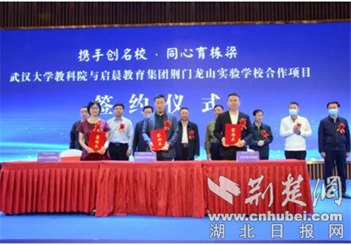 荆楚网(湖北日报网)讯(通讯员 熊东东)5月16日上午,武汉大学教科院与启晨教育集团荆门龙山实验学校合作项目签约仪式在荆门国际会展中心举行。