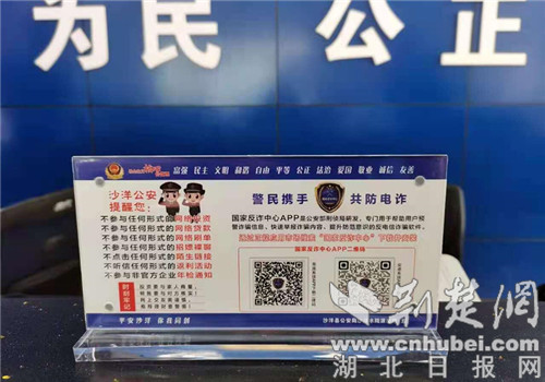 荆楚网(湖北日报网)讯(通讯员 黄翔)从5月17日起,沙洋县城区各大酒店、餐厅的公共餐桌上相继出现了一种反诈桌牌。
