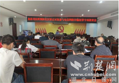 荆楚网(湖北日报网)讯(通讯员 王妙)为进一步提高社区矫正对象对电信网络诈骗的防范意识,切实做好社区矫正对象安全防范教育,5月27日上午,荆门市公安局东宝分局龙泉派出所联合龙泉司法所组织辖区30余名社区矫正对象开展了“反诈骗”宣传教育活动。
