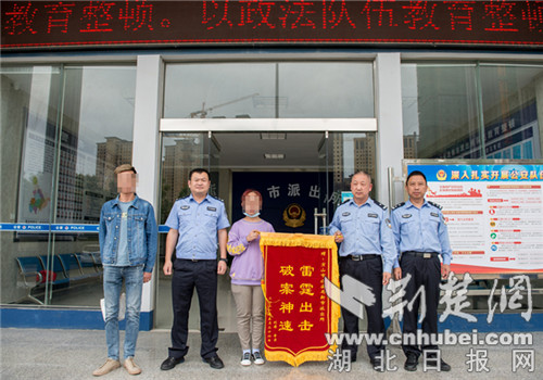 5月27日下午,京山市公安局新市派出所为群众追回“杀猪盘”被骗资金5万元,受害人小芳(化名)为派出所送来锦旗,对办案民警追回其被骗损失表示衷心感谢。