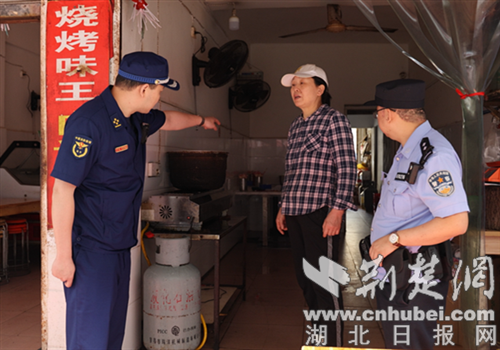 消防人员对街边餐馆进行消防安全排查。通讯员供图