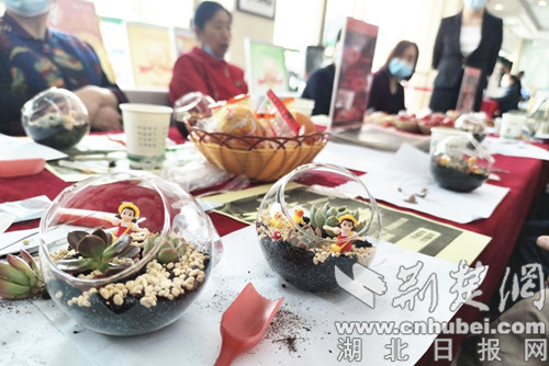 客户参加荆门邮政客户生日节DIY手工盆栽制作。通讯员供图