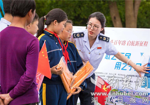 近日,荆门市漳河新区税务局组织青年税务干部走进漳河镇周集小学,开展“红蓝携手伴童行 百年党史励雏鹰”党史税法宣传进校园活动。税务干部赵振用6幅图画讲解了周恩来总理的求学生涯后,向同学们提问:“周总理始终将个人命运和中华民族的命运相结合,用行动践行了‘为中华之崛起而读书’的志向。同学们,我们是不是要向周总理学习?”