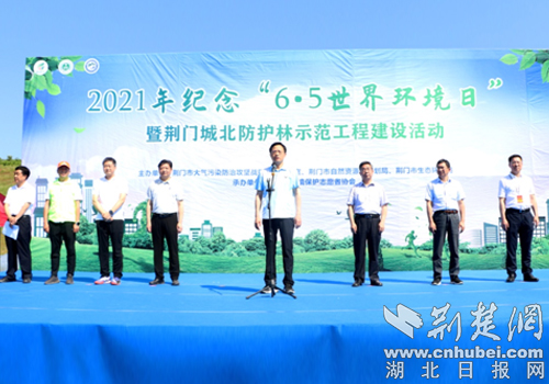 荆楚网(湖北日报网)讯(通讯员 孙治斌)6月5日上午,荆门举办2021年纪念“世界环境日”暨荆门城北防护林示范建设活动。活动现场,市委书记王祺扬带头挥锹铲土,和数百名市民、志愿者们一起种下一片生态防护示范林。