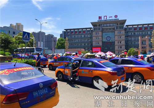荆楚网(湖北日报网)讯(通讯员戴永君、廖鑫)6月7日上午,随着2021年全国高考启幕,荆门城区2021年爱心助考活动也正式启动,140台出租汽车粘贴统一的爱心助考标识,倾情服务考生和家长,受到众多考生和家长的欢迎。