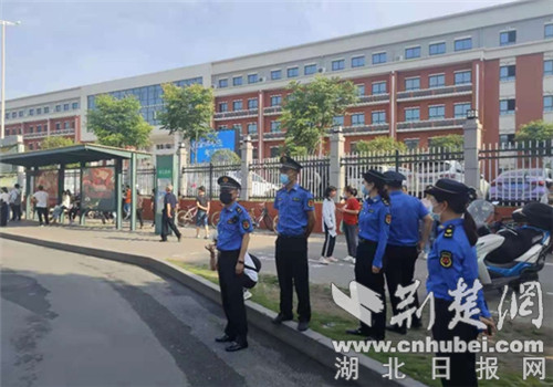 城管队员在考场外巡查。通讯员供图