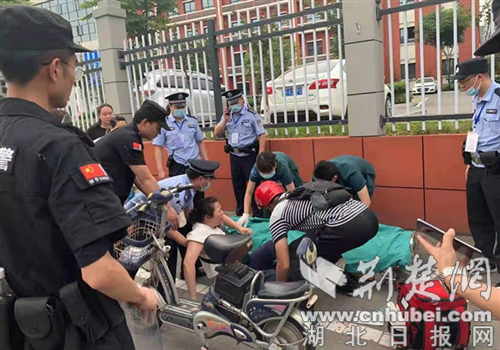 荆楚网(湖北日报网)讯(通讯员 刘洋)6月8日下午5时15分,荆门市公安局高新区·掇刀区分局应急处突大队民警在掇刀石中学考点周边巡逻时,发现考点附近公交车站旁有一名妇女坐在地上,民警立即上前查看。