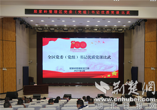 在党史教育中开展党委(党组)书记优质党课比武是今年屈家岭党史教育的创新举措。此次党课比武是屈家岭管理区党委(党组)书记优质党课比武的第一场,当天,管理区综合办公室、纪检监察工委、党工委组织部、党工委宣传统战部、党工委政法委分管日常工作的负责人分别围绕抗疫精神、延安精神、井冈山精神、抗美援朝精神、长征精神,分享了自己的党史学习教育成果。