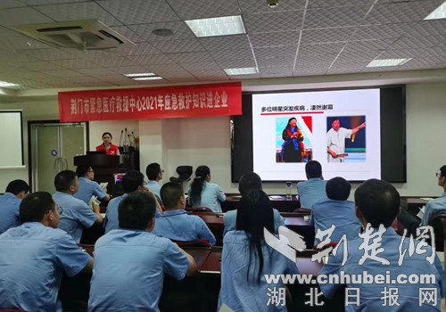 荆楚网(湖北日报网)讯(通讯员 简雪莲)6月22日,荆门市紧急医疗救援中心党员志愿服务队带领培训师走进湖北航特装备制造股份有限公司,为车间负责人、部门班组长等60余名干部职工开展了急救知识培训。