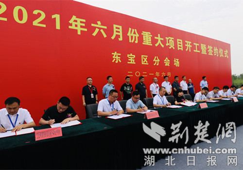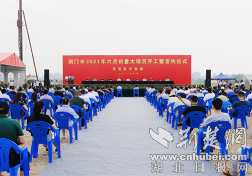 荆楚网(湖北日报网)讯(通讯员 刘洋)6月30日上午,2021年6月份荆门市重大项目集中开工暨签约东宝分会场活动在东宝工业园举行,共有16个项目开工和签约,总投资79亿元。