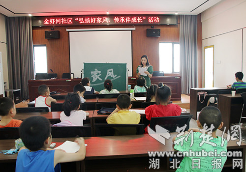 荆楚网(湖北日报网)讯(通讯员 罗晓菊)7月23日,荆门市东宝区龙泉街道金虾河社区开展了“弘扬好家风 传承伴成长”活动,来自辖区的20多个孩子参加了此次活动。