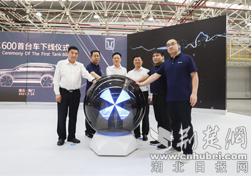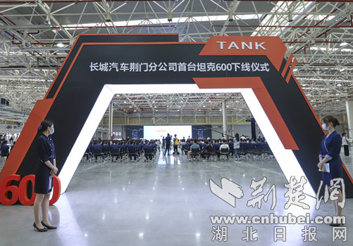 荆门市委书记王祺扬宣布长城汽车荆门分公司首台整车“坦克600”下线。荆门市委副书记、市长李涛,荆门市政府秘书长谢继先,荆门市委副秘书长何平,荆门市政府办公室副主任原野,长城汽车股份有限公司品牌分公司、零部件分公司、荆门市长城智能科技有限公司负责人及部分供应商参加活动。长城汽车股份有限公司荆门分公司总经理杨国彤,荆门高新区党工委书记、掇刀区委书记周俊杰分别致辞。长城汽车品牌运营总监谷玉坤推介新车“坦克600”。