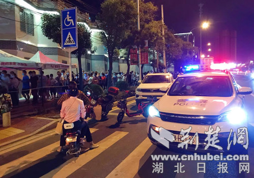 荆楚网(湖北日报网)讯(通讯员 贺林辉)8月5日,荆门中心城区启动全员核酸检测,荆门市公安局巡特警支队街面警务站深入检测点,维护现场秩序,提醒群众戴好口罩,保持安全距离,有序检测。夜深,医务人员继续为市民做核酸检测,闪烁的警灯是安全的保障。