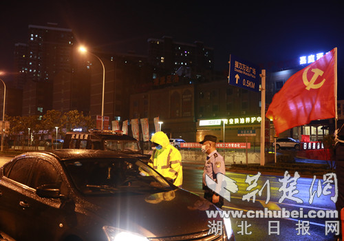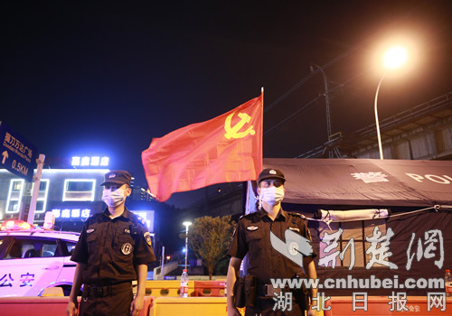 荆楚网(湖北日报网)讯(通讯员 贺林辉)8月7日凌晨开始,在荆门城区白云大道虎牙关铁路桥下和象山大道景山花园门口路段,荆门市公安局巡特警支队设置道路封控点,民警正对过往车辆进行疏导管控。他们冒着酷暑、顶着风雨,守护着这座城市。
