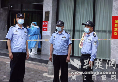荆楚网(湖北日报网)讯(通讯员 冯波)8月13日,钟祥市公安局法制大队教导员许官斌、四级高级警长彭全舫、二级警长肖兴荣三名老民警在风险地区返钟留观点值守的第六天。8月6日,三人带着生活用品,就在留观点楼下拉起了警戒线,二话不说就进驻了留观点。