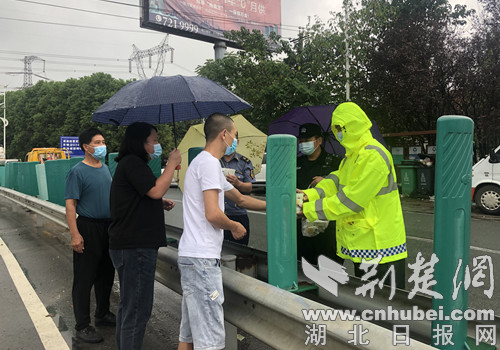 “接着,接着,给你们送点吃的,你们辛苦了!”看着值守点的工作人员一守就是六七个小时,扫码测温登记忙得顾不上吃饭,永兴街道店家老板曾林看不下去了,他为在小区抗疫的工作人员送去热腾腾的汉堡和奶茶,还叮嘱他们做好自身防护。连日来,京山党员干部积极投身疫情防控,坚守一线,顶烈日、冒大雨,群众看在眼里,记在心上,这样的暖心故事在京山疫情值守点频频上演。