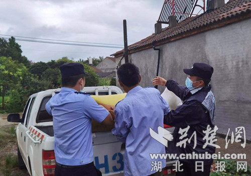 长寿镇刘畈村五组因地势低洼,积水严重,眼看天色渐黑,水势还在上涨,长寿派出所所长李兵立即带领全所民警前往刘畈村,挨家挨户帮助村民将粮食、电器等转移到安全地点,仅用一个多小时时间便将40户99人成功转移。