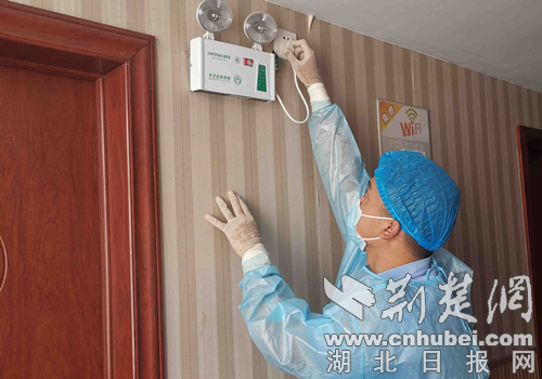 接听电话之余,刘思奇还要定期排查各类安全隐患,穿着不透气的防护服楼上楼下跑,逐个检查灭火器和应急灯,汗水很快就把里面的警服完全浸透。