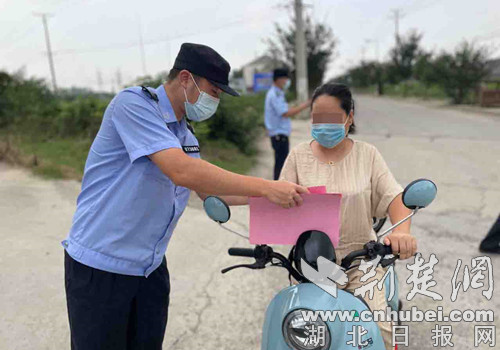 荆楚网(湖北日报网)讯(通讯员黄翔 李方琳)8月18日下午,沙洋县公安局李市派出所副所长苏克彬与社区干部到辖区金牛社区进行疫情防控巡查时同步展开反诈宣传。
