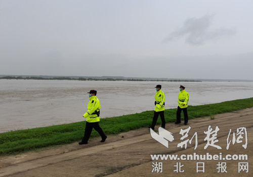 荆楚网(湖北日报网)讯(通讯员 黄翔)8月27日上午,沙洋县马良镇姚集村下起一阵急雨,此处的汉江大堤外水流湍急,沙洋县公安局马良水陆派出所教导员罗霄带领巡逻队正在大堤上来回巡查。