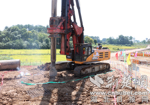 荆楚网(湖北日报网)讯(通讯员 庞文静 周芳)9月8日上午,伴随着机械的轰鸣声,中铁十一局集团荆荆铁路1标跨团何路特大桥首根桩基顺利开钻,标志着该工程正式进入全面施工阶段,为荆荆铁路工程建设全面贯通奠定了基础。