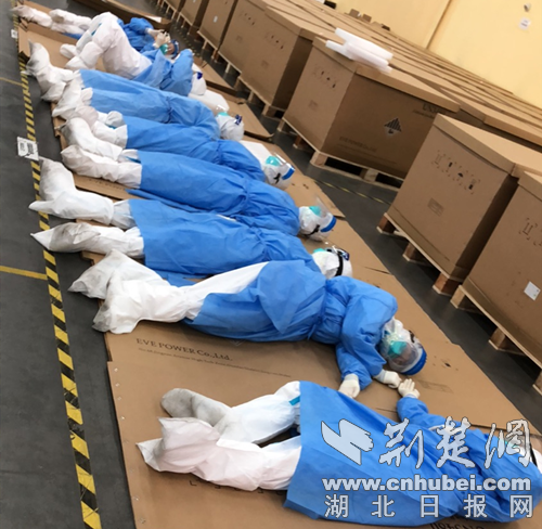 医护人员累了席地而睡。通讯员供
