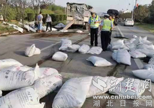 图为散落在路中间的肥料。通讯员供图