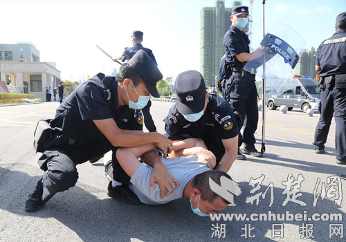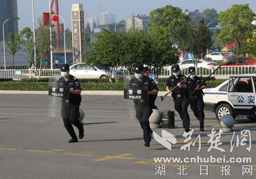 荆楚网(湖北日报网)讯(通讯员黄翔)10月1日上午8时许,沙洋县公安局调集巡警、刑侦、治安、交警、内保、网安和派出所等多个警种警力,在城区某学校门前举行应急处突实战演练。