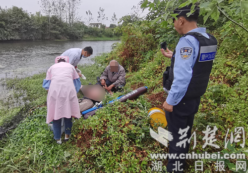 几分钟后,民警与报警人成功会合,但事发地还在相对较远的河岸边。事不宜迟,民警杨天宇和辅警陈路徒步穿过杂草和灌木丛向岸边搜索前进,民警熊伟则驾驶警车返回为救护车带路。