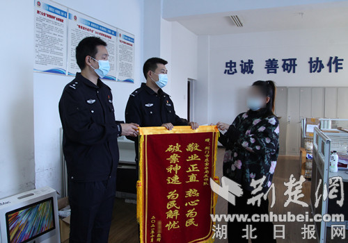 荆楚网(湖北日报网)讯(通讯员 闫春阳)“感谢你们帮我止付了10几万,昨天钱到我账上了,这面锦旗送给你们。”