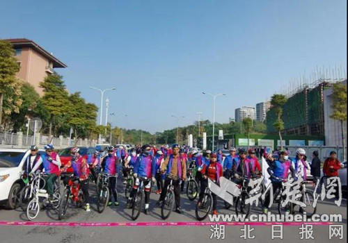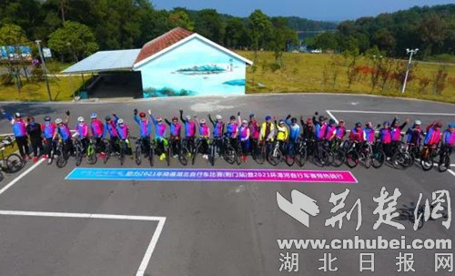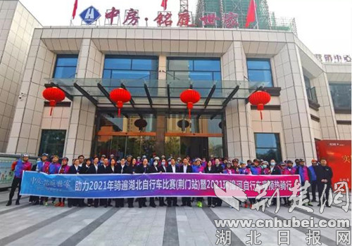 荆楚网(湖北日报网)讯(通讯员 熊东东)10月24日上午,位于荆门漳河新区双喜大道与上马墩路交汇处的中房·铭庭世家营销中心门前,热闹非凡,近百名自行车骑行爱好者在这里集合,参加2021年骑遍湖北自行车比赛(荆门站)暨2021环漳河自行车赛预热骑行活动,他们将从这里出发,环风景如画的漳河骑行。
